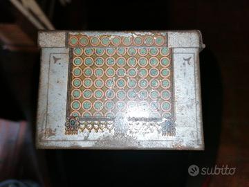 Bella scatola pubblicitaria ditta Biscotti Delser period primi del 900,stile Liberty. Buone condizioni di mantenimento, vista l'età, qualche punto di ruggine sul coperchio come da foto.