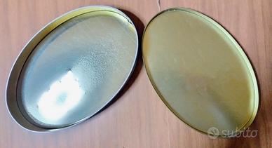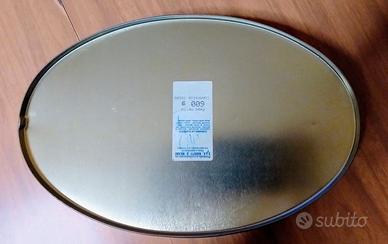 Propongo questa splendida scatola in latta ovale, nata dall’incontro tra due eccellenze di Torino: l'eleganza di Baratti & Milano e il mito FIAT. Sul coperchio spicca il fascino intramontabile del logo storico anni '20 con la corona d'alloro.