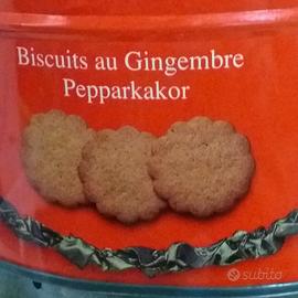 Scatola di latta Gille per biscotti finger Sharp svedesi rotonda diametro cm19 altezza 8cm con decorazione ghirlanda porcospino con bacche rosse 1994 come etichetta scadenza dei biscotti no ammaccature no ruggine no graffi