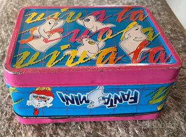 Scatola latta Kinder Sorpresa Fantasmini Larghezza cm 14, profondità cm 10.5, altezza cm 6.5 Oggetto anni ’90 in ottime condizioni, la chiusura è funzionante €24 40 Sorprese Kinder varie serie - anni ‘90 2 Happy Hippo Fitness 1993 3 Pingui Beach 1994 2 Nani Gnomburloni 1992 1 Maestro Gufo Pagot Calimero 1996 4 L’Allegra Scuola dei Coccodritti Crazy Crocos 1992 4 Coccobulli 2 Orsetti/ Orsetten/Top Ten Toddies 1999 1 Delfini 5 Happy Dinos anni ‘90 1 Teste sulle ruote K98 n.95 1998 3 serie Rotelle: 2 K02 Bambini con rotelle - 1 K99 Vichingo 1 Ranoplà Nina Pattinina 1993 1 Stralunati 1998 2 Gli onorevoli Castorcin 1999 2 Top Ten Teddies 1 Gli Elefantao in spiaggia - Elefanti Clubburlaub 1997 1 Leo Venturas 1993 2 Squalibabà + 1 in omaggio priva di un piedino1995 1 Fantsmino 1996 1 Vampirelli/Tenebrosi 2000 2 Statuine da collezione Parmalat serie Ufolotti/Flintstones 2 sorprese Parmalat Totale 42 sorprese Senza cartina Condizioni come da foto Set 42 sorprese €88 Set scatola Kinder Sorpresa + 42 sorprese Kinder € 90