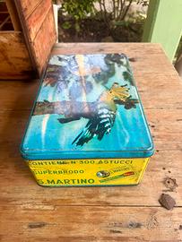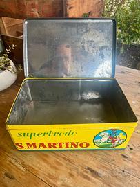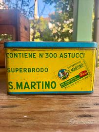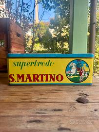 Grande scatola originale in latta pubblicitaria Superbrodo S. Martino, produzione italiana anni 50/60.