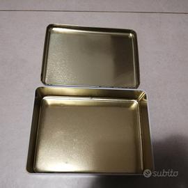 Dimensioni circa 22x16x7 La scatola presenta un po' di ruggine sul bordo, fondo e angolo ha perso la copertura come da foto