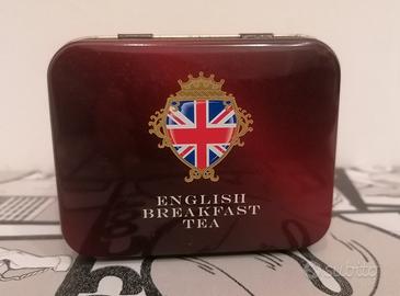 Scatola di latta thè. New English Teas. English Breakfast Tea. London. Dimensioni h 7,5 cm x 8,5 cm x 6,5 cm. In ottime condizioni come da foto.