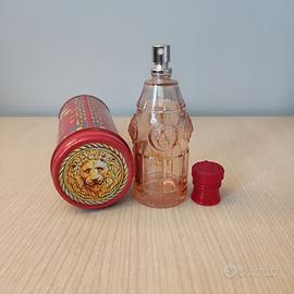 Scatola di latta vintage Versace, con bottiglia (vuota) di profumo Versace Red Jeans woman