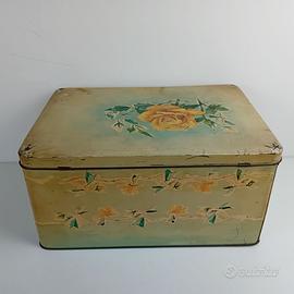 📦 Condizioni: con segni del tempo, piccole ammaccature e ossidazioni, ma complessivamente in buono stato e molto decorativa. Ideale per collezionisti di scatole pubblicitarie e oggetti vintage italiani.