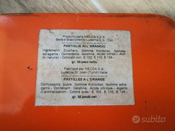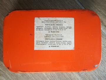Scatola di latta vintage anni '70 pastiglie all'arancia dolci caffarel prochet