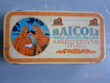 Vendo vecchia scatola di latta “biscotti dei dogi - Baicoli - famosi biscotti veneziani - Angelo Colussi - Venezia” come da foto.