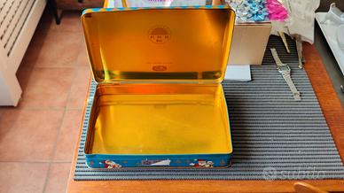 Vendo scatola a tema natalizio in metallo biscotti Lazzaron.La scatola è in ottime condizioni per l'età,presenta residui di adesivi su un lato e sul fondo facilmente eliminabili.