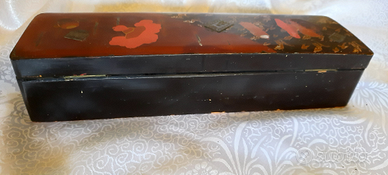 Vintage degli anni cinquanta-sessanta, in leggerissimo legno laccato e pittura realizzata nella parte superiore, presenta anche tre piccoli dettagli in metallo presumibilmente bronzo. Piccoli segni del tempo visibili nelle foto, cioè non perde dal suo fascino e unicità.