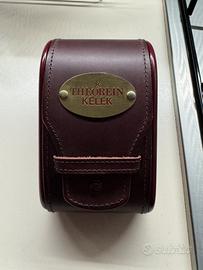 Scatola per orologio theorein kelek, pelle e legno, in buone condizioni come da foto.
