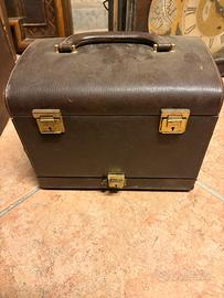 Antica scatola pochette borsa portaoggetti In pelle specchio all’interno con cassetto sotto