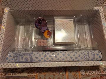 Scatola speciale per il set di carte Pokemon s&v 151. Comprende moneta, segnalini, dadi, portamazzo e tappetino. - Design a tema Mew.