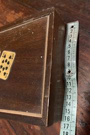 Porta carte da gioco , legno esterno scuro con applicate 4 piccole carte francesi