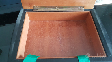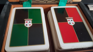 Scatola di legno, con coperchio disegnato con Grazie danzanti, porta carte da gioco. Degli anni sessanta. Con due mazzi di carte