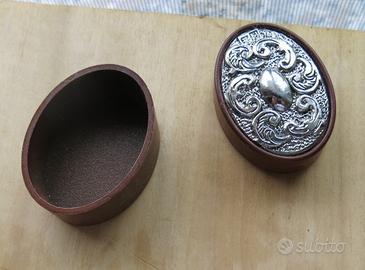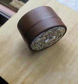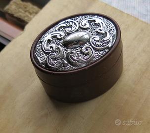 SCATOLA PORTA GIOIELLI O PORTA PASTIGLIE IN BACHELITE E LAMINA D'ARGENTO -