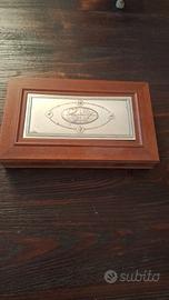 elegante cofanetto portaorologi in legno e velluto con decorazione in argento 925.