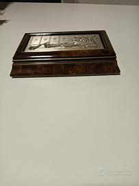 Scatola porta sigari in legno e argento