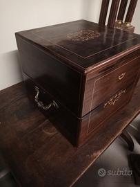 Elegante scatola portabicchieri in legno palissandro con intarsi decorativi in acero.