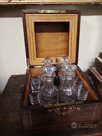 La scatola è già restaurata, in perfette condizioni, unica pecca due bicchierini leggermente sbeccati.