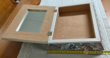 Bellissima e robusta Scatola Portagioie anni '90 in legno con specchio interno , rivestita internamente in panno.