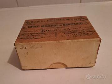 Scatola pubblicitaria Carlo Minerbi fu Graziadio carteria e tipografia militare Bologna Lunghezza 10cm Larghezza 8cm