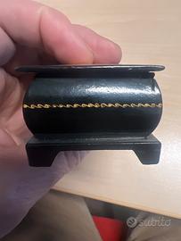 Questa scatola è realizzata in cartapesta e decorata con intricate miniature laccate come visibile.