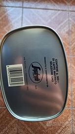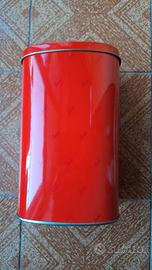 Scatola in latta della Segafredo caffè. Colore rosso, in buone condizioni. Pezzo da collezione. Con decori e auguri stampati, oggetto dunque natalizio. Misure: 9x12x21.5cm. Disponibili molte altre scatole in latta da collezione