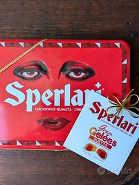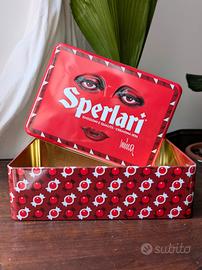 Scatola in metallo Sperlari con design ispirato a Mina, completa di firma autografa.