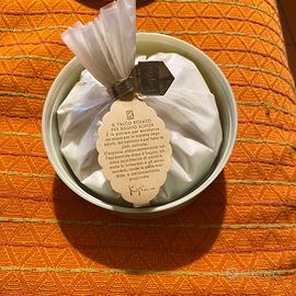 Scatola talco in bachelite o plastica dura,della ditta Kofler di Padova.All interno sacchetto di talco borato ancora con sigillo originale.coperchio esterno verde chiaro,con grafica floreale .buono stato di conservazione.Solo da collezione non da utilizzo.consegna a mano su Roma