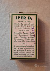 Scatola vintage in cartoncino di IPER D3, vuota, che conteneva 2 fiale da cc. 1, "ZEF" terapia massiva e di deposito delle avitaminosi D, casa farmaceutica G. Zambon & C. S.p.a. - Vicenza.