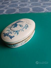 scatola di latta vintage di cioccolatini Caffarel, con la scritta "La croccantina di Cioccolato".