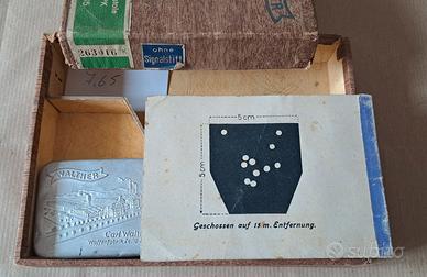 Rara Scatola per PPK Zella Mehlis anni '40, in buone condizioni , con piccolo manuale e scatoletta Walther in metallo con panno per pulizia originale (manca l'olio) 300€, Disponibile anche rarissimo libretto (in tedesco) in condizioni perfette con lucidi sovrapponibili che spiegano in meccanismo interno della PPK (350€). Disponibili anche cartonato Walther anni '40 (60€) e catalogo Walther Angelini e Benardon (25€)