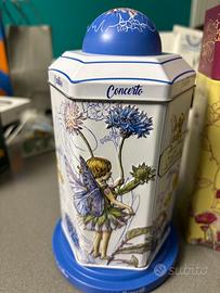 Vendo 2 scatole di biscotti musicali Marie Ange Di Costa, in latta decorata con illustrazioni di fate e fiori in stile romantico. – Edizione biscotti da collezione