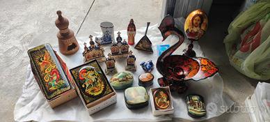 Scatole russe in legno laccate dipinte a mano Scatole di Palekh Ceramiche di Ghzel Cofanetti bambole Stampe di arte popolare Icone e altri oggetti russi Vendo tutto a 400 euro Ritiro a Palestrina (RM)