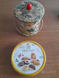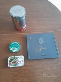 14 scatole di latta vuote per collezione, quella biscotti Gentilini 10 euro, le altre 5 euro l'una. Se prese in blocco 60 euro