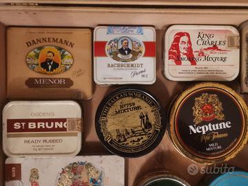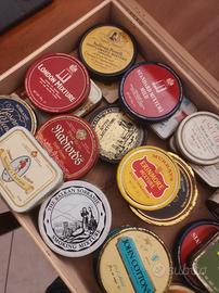 Vendo collezione privata di 25 scatole di latta per tabacco vuote. Un vero e proprio tesoro per gli amanti del vintage e del collezionismo "tobacciana". Le lattine risalgono principalmente agli anni '70 e '80.