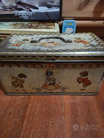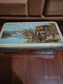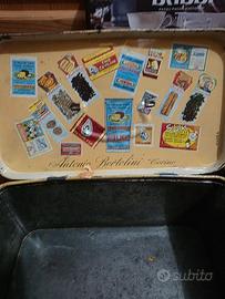 cedo per assenza di interesse le scatole di latta presenti in foto, di cui 4 molto vecchie, «Baracchini & figli, Villafranca e Spezia biscotti,»