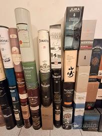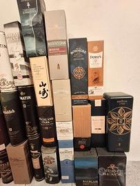 40 scatole vuote di whisky, in parte in latta in parte in cartone, buono stato. Vendita solo in blocco