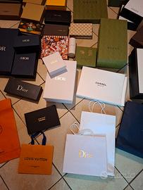 Scatole e buste vari luxury brand tra cui: Dior Louis Vuitton Gucci Burberry Fendi Hermès Prada Prezzo singola scatola 15 euro. Prezzo scatola + busta 20 euro. Prezzo solo busta 5 euro. Valuto vendita in lotto. Chiedere disponibilità pezzi rimasti. Condizioni da ottime a normali segni di usura.