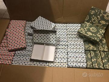 Scatole vintage in cartone, due scomparti per mazzi carte da ramino scala quaranta poker. Con semi delle carte picche cuori quadri e fiori azzurri e blu oppure Rossi e neri.