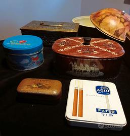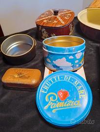 Scatole in latta vintage di varie forme e dimensioni.