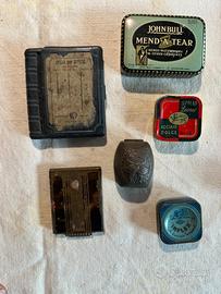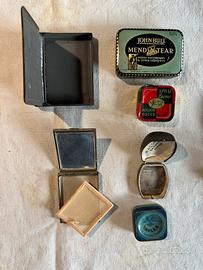 Come da titolo vendo piccole scatole pubblicitaria di metallo ed altri materisli, fra esse anche scatole contenitori per anelli alcune di esse con logo e indirizzo delka gioielleria, un contenitore in metallo per spille da ufficio prina delle “grappette” per trattenere fogli di carta ecc. ecc. Accrtto offerte (congrue) per l’intero lotto, disponibile su richiesta all’invo di altre foto e alla doefizione.