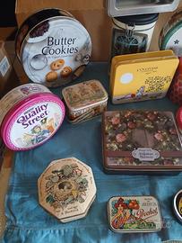 Vendo 17 scatole di latta. Varie forme e misure. Scatole di biscotti, caramelle ed altro. Vedi tutte le foto. Vendo per 10 euro tutte le scatole.
