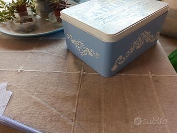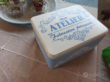Restyling scatole in latta, vassoi, in stile shabby, vintage, provenzale. Diverse dimensioni e tecniche: chalk e stencil, pizzi, stoffe, fiori secchi, scrap. Possibilità spedizione a carico dell'acquirente. Prezzo indicativo e variabile a seconda di dimensione, tecnica e finitura
