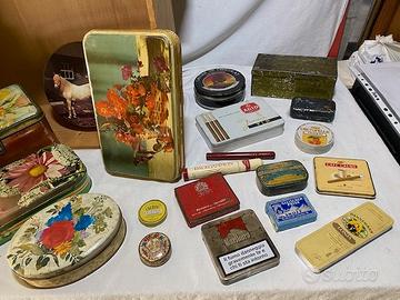 Scatole Latta Vintage in metallo smaltato. Lotto intero di Nr. 54 pezzi.