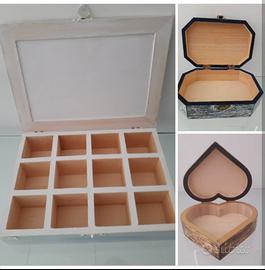 -Scatola portagioie (o variante: porta bustine da te) ,con decorazione 3D, misura 16 x 22 x 5, singolarmente euro 20 ;