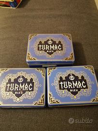 Due scatole di latta di Turmac blue una da 50 ed una da 100 pezzi, il fondo delle due scatole presente segni di ossidazione dovuti al passare del tempo, prezzo 10 euro tutte e due.