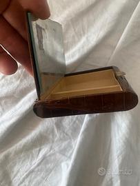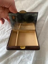 Scatoletta scatola porta trucchi pelle coccodrillo alligatore vintage contenitore specchio