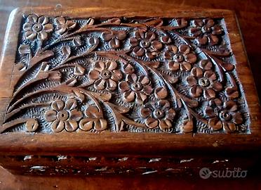 scatoletta vintage in legno intarsiato