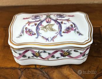 Deliziosa piccola scatola in porcellana Ginori del ‘900 dipinta con decoro “Rapallo”. In perfette condizioni. Dimensioni: base cm. 8 x 5, altezza cm 4 peso gr.110